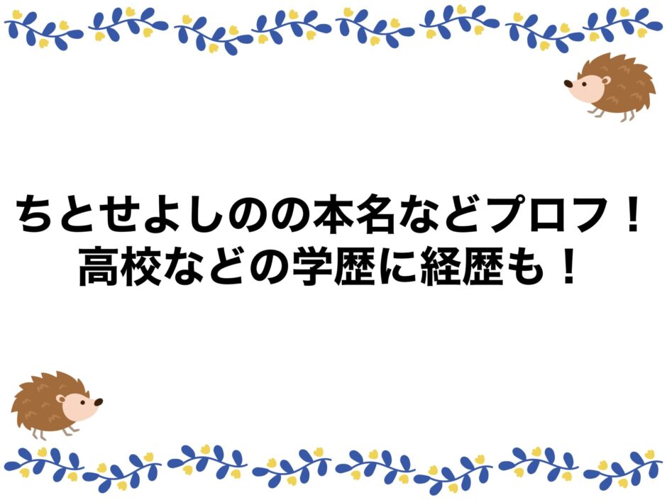 なんて疑問をお持ちのアナタのために、ちとせよしのさんの本名などプロフ情報、高校などの学歴に経歴についても調査、まとめました。