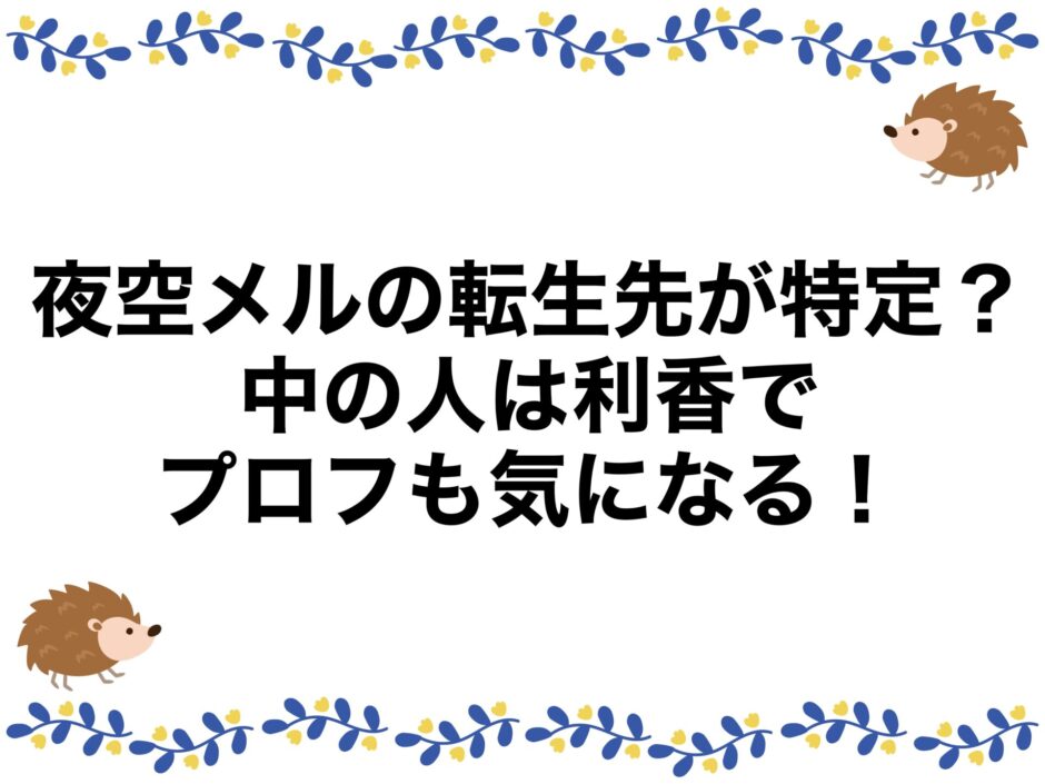 なんて疑問を持つアナタの為に、夜空メルさんの転生先、中の人は利香でプロフィールも詳しく調査、まとめました。